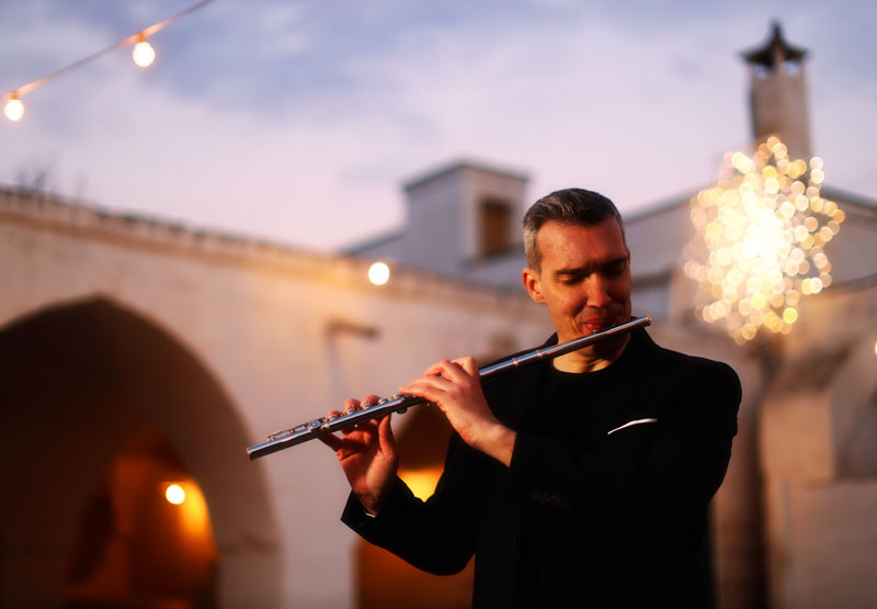 begun his musical training at the age of 14 and got his soloist diploma at the age of 19. He studied with Annamaria Morini in Bologna and Manuela Wiesler in Vienna. At the age of 22, he won in Darmstadt the coveted Kranichsteiner International Prize and started a very highly successful career as a solo flutist. His activity starts, as a logical prosecution of the Prize of Darmstadt, as an advocate of contemporary music: his fame has grown very fast and he quickly became the preferred interpreters of the many of the biggest living composers. Salvatore Sciarrino, György Kurtag, Doina Rotaru, Toshio Hosokawa, Ivan Fedele, Olga Neuwirth, Philippe Hurel, Wolfgang Rihm and many others wrote for him some beautiful soloflute works as well as new flute concertos, which contribute to wide the flute litterature. Some years later, his career turns back to the whole repertoire, without any distinction of styles and historical periods. An unique figure among the flutists of today, Mario is one of the very rare artists capable of passing from the most classical composition to the most extreme contemporary piece, witht the same vivd virtuosity, vibrant personality and rigorous both analytic and aesthetical approach.
