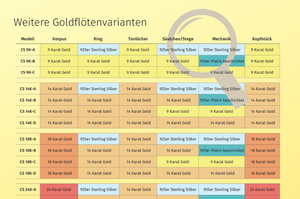 Entdecken Sie unsere Goldflöten in 9, 14, 18 und 24 Karat Gold sowie Platin in verschiedenen Ausführungen, individuell auf Ihre Wünsche zugeschnitten.