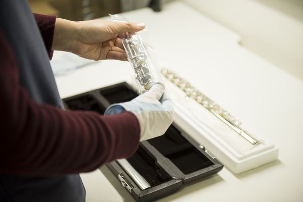 Im Anschluss durchläuft jedes Instrument eine umfassende Qualitätskontrolle, bei der Funktion, Dichtigkeit, Mechaniklauf und klangliche Eigenschaften sorgfältig überprüft werden. Nur wenn alle Anforderungen erfüllt sind, entspricht die Querflöte dem hohen Qualitätsstandard von Miyazawa.