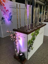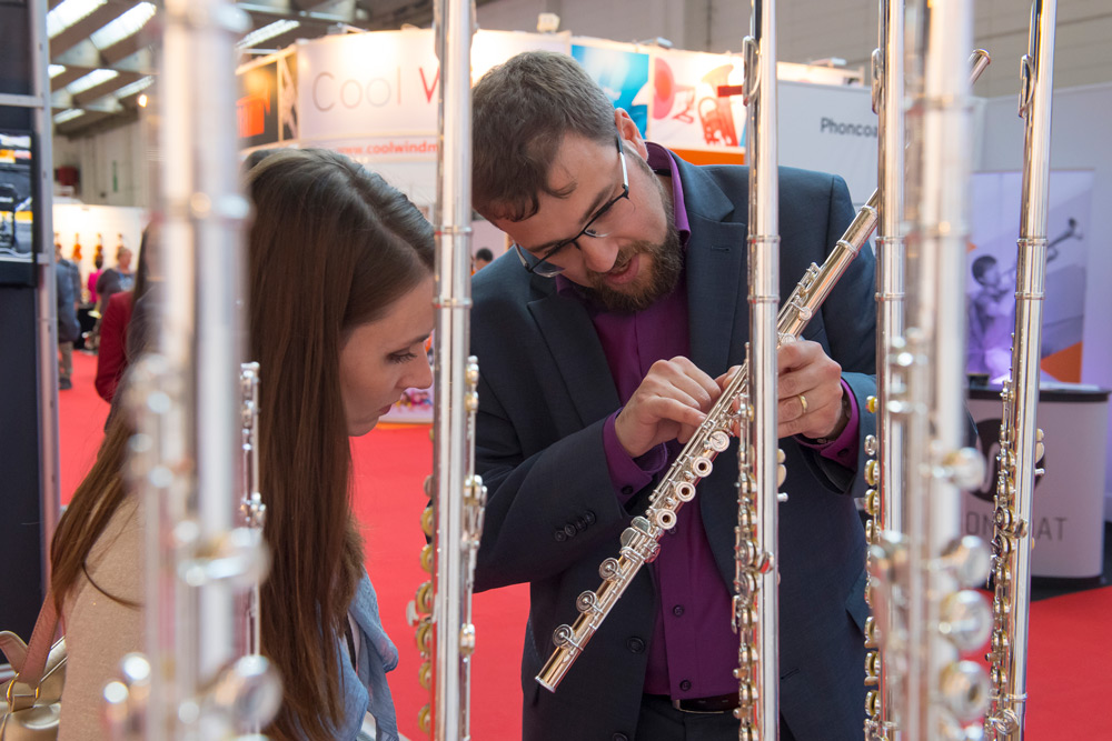 Über 40 Querflöten wurden an unserem Messestand dem Publikum zum Testen angeboten. Vom einfachen Schülerinstrument bis zur Querflöte aus massivem Gold war alles dabei.