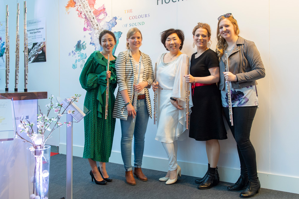 Ebenfalls am Samstag hatten wir die Ehre, vier unserer internationalen Miyazawa Artists begrüßen zu dürfen. Mihi Kim, Martina Silvester, Theresa Schröttle und Minhee Lee waren an unserem Stand für ein Meet and Great. Über einige musikalische Einlagen unserer Artists konnten sich alle Anwesenden freuen. Unterstützt wurden Sie von Aimée Taylor.