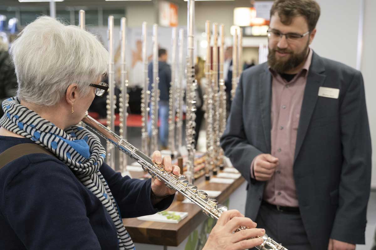 Wir sind mit einer großen Flöten- und Zubhörausstellung vor Ort.